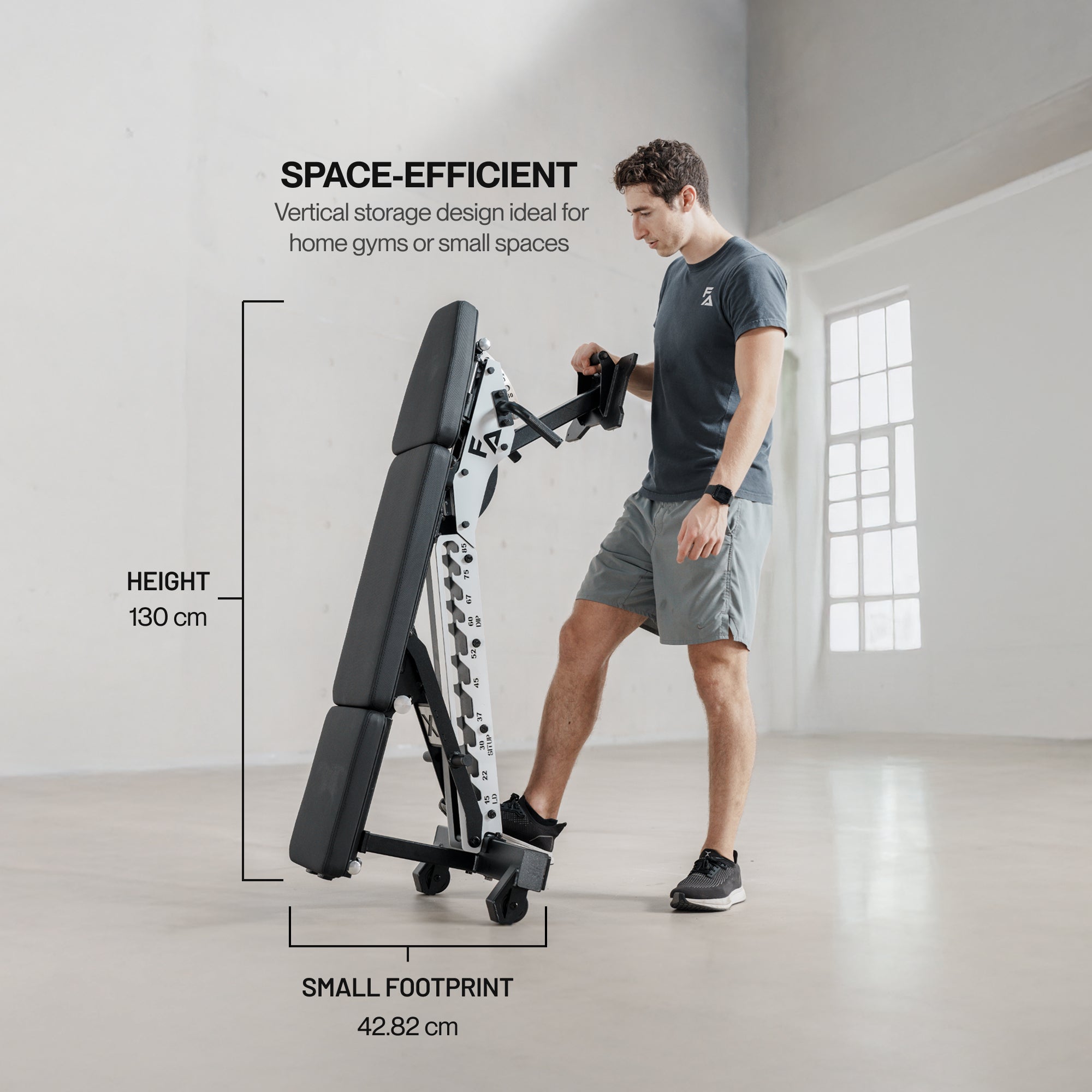 Folds up and stores upright to keep your training space clear.